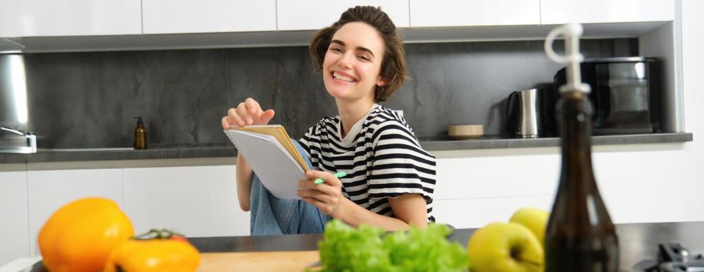 Koche zwei Getreidebasen parallel, bereite zwei Proteine und ein großes Blech Ofengemüse zu. Diese Bausteine lassen sich täglich neu kombinieren. So entsteht Abwechslung, ohne jeden Tag komplett zu kochen oder lange Rezepte zu lesen.